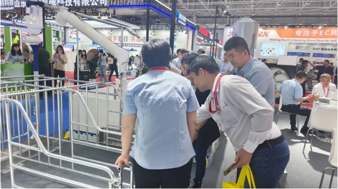 展會現場,青島法牧不僅全方位展示全自動化層疊式蛋雞籠養(yǎng)設備、智能飼喂系統(tǒng)、欄位系統(tǒng)、料線系統(tǒng)、環(huán)控系統(tǒng)及稱重系統(tǒng)等畜禽養(yǎng)殖設備,還帶來了多項創(chuàng)新技術和智慧養(yǎng)殖整體解決方案,吸引了眾多客戶和行業(yè)專家的關注。這些創(chuàng)新產品不僅提高了養(yǎng)殖效率,還保證了畜禽的健康,受到了參展商和觀眾的一致好評。
